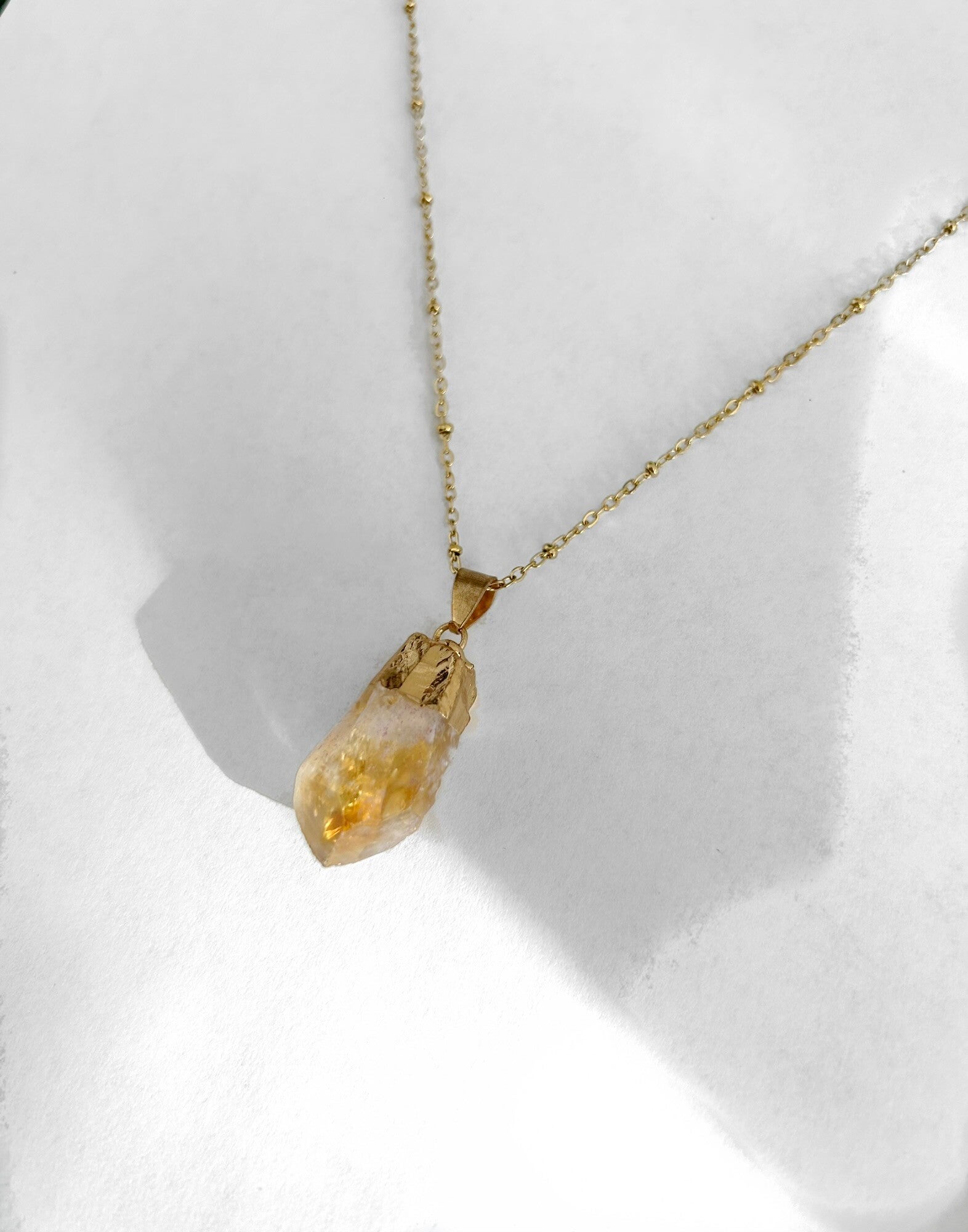 Deze prachtige ketting van stainless steel (45 cm) is verrijkt met een citrien edelsteen, bekend als de steen van vreugde, energie en overvloed. Citrien staat symbool voor positiviteit, zelfvertrouwen en succes, en helpt negatieve energie om te zetten in kracht en motivatie. Perfect om dagelijks te dragen als een bron van warmte en inspiratie!