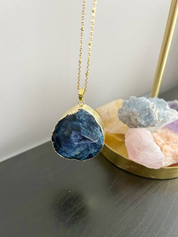 Blauwe Druzy Agaat Edelsteenketting – Kalmte & Creativiteit